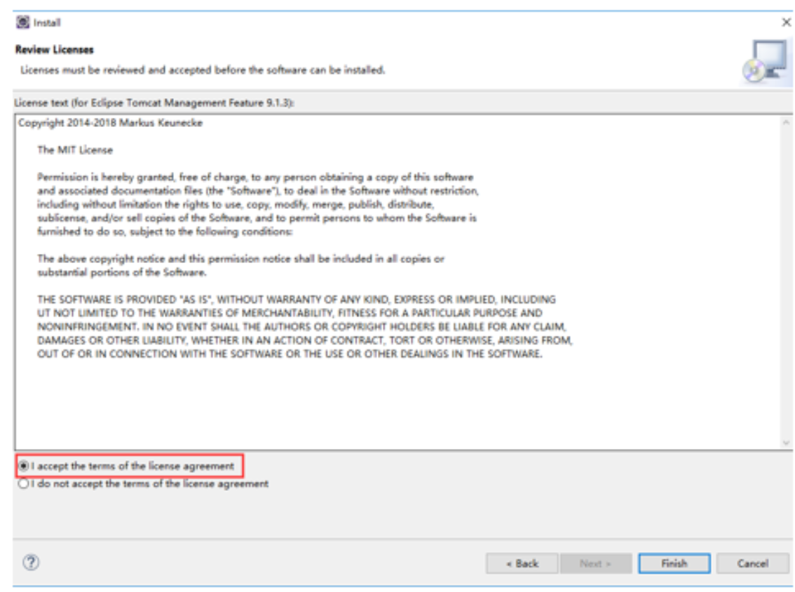 5.接受许可,然后等待,在eclipse右下角会有安装进度。进度完成时,会弹出要求重新启动eclipse。